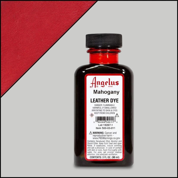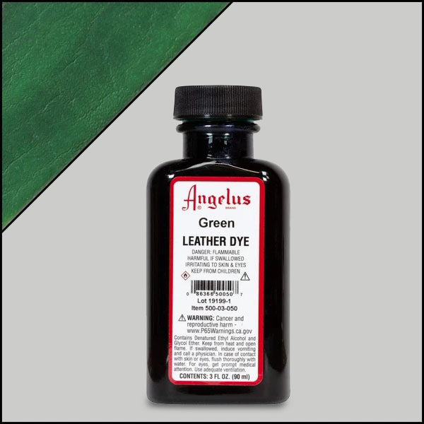 Angelus Leather Dye is a permanent liquid dye used for changing the colour of all leather articles. These dyes are guaranteed to penetrate the leather (as long as it has not been painted or pigmented) and form a lasting colour which will not peel, crack, or wash off.
