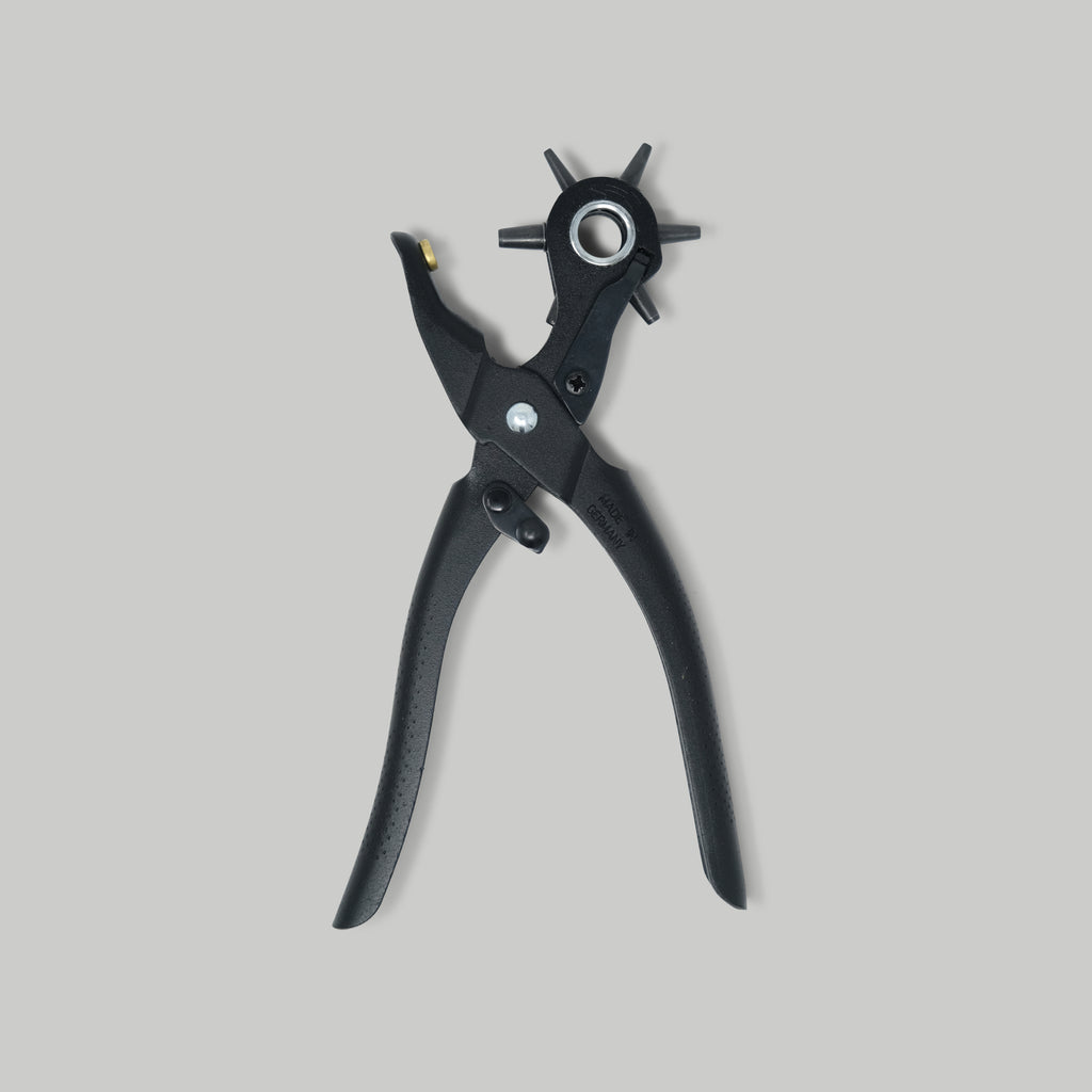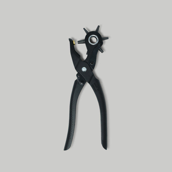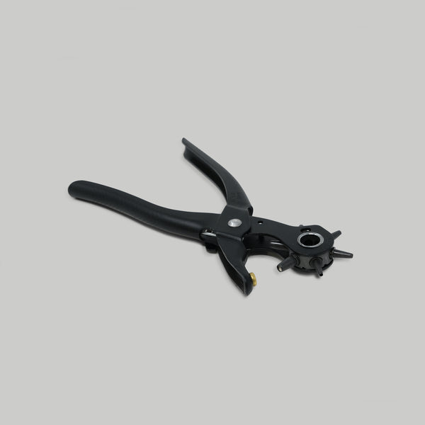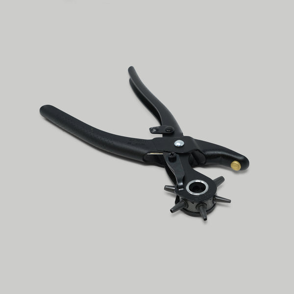 A fine quality pressed frame revolving punch with drive tubes. Finished in a fine Black Powder-coat for extra durability. All tubes are heat treated to give long wear. Furnished with tubes sizes: 0 (5/64"), 1 (3/32"), 2 (7/64"), 3 (1/8"), 4 (5/32") & 6 (3/16").