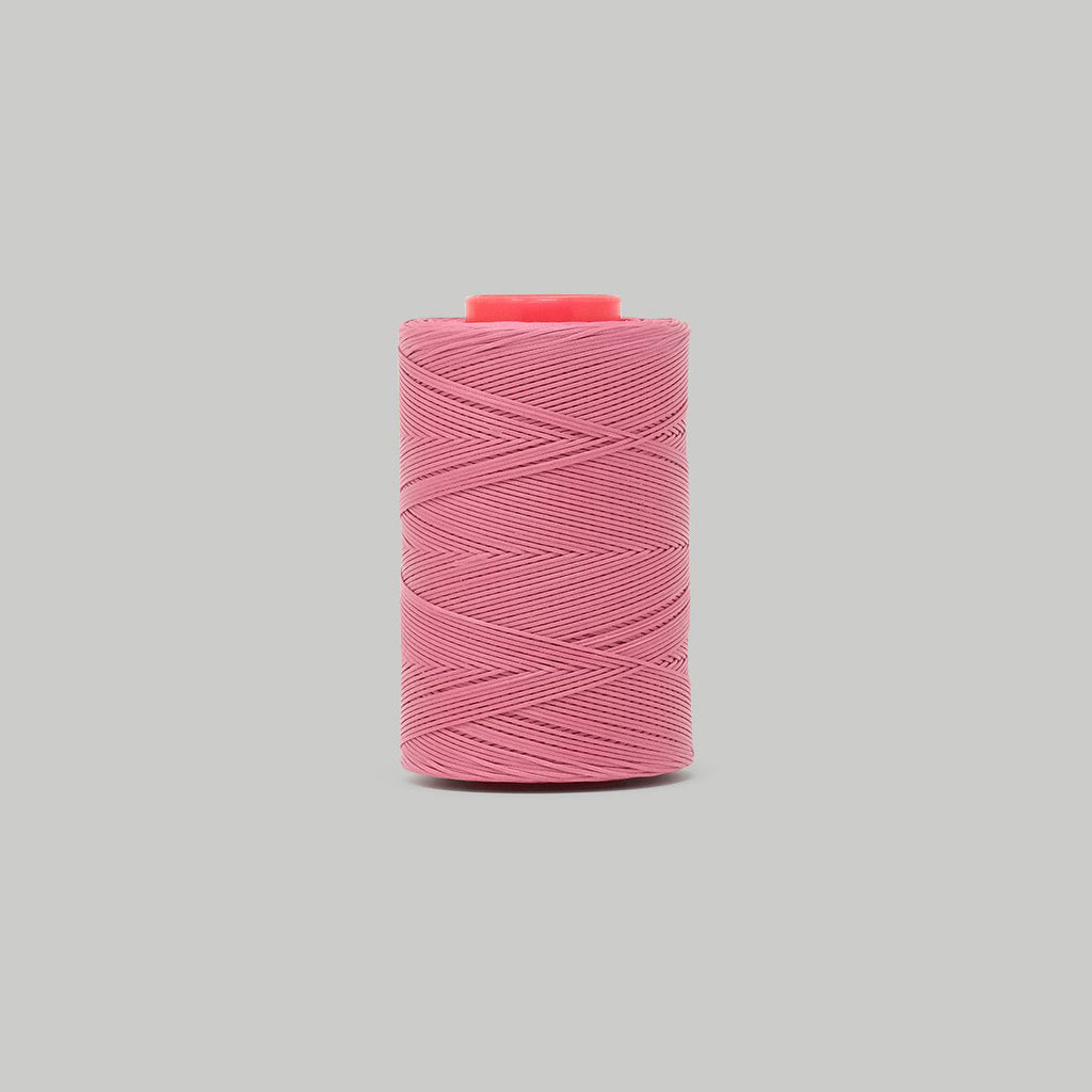 Finely braided and lightly waxed. 100% Polyester.