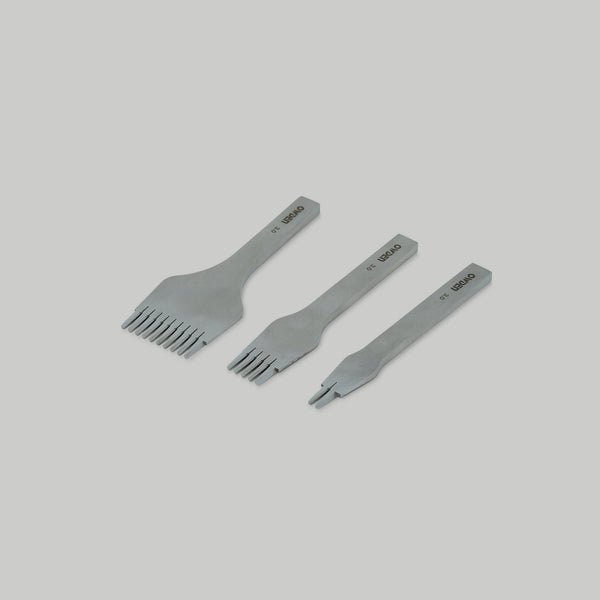 These pricking irons will enable you to achieve the very slanted look of fine European leather work, at a fraction of the cost of other brands.